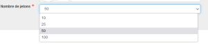 le nombre de jetons souhaités (10, 25, 50,100)