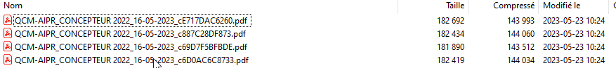 L'archive ZIP contient autant de fichiers PDF que d'examens passés lors d'une même session/journée pour le profil concerné.